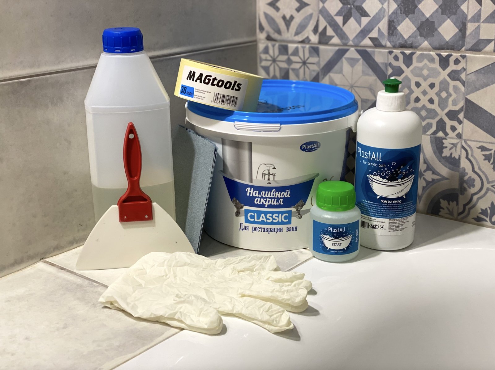 Один комплект используется для реставрации одной ванны или двух душевых поддонов.